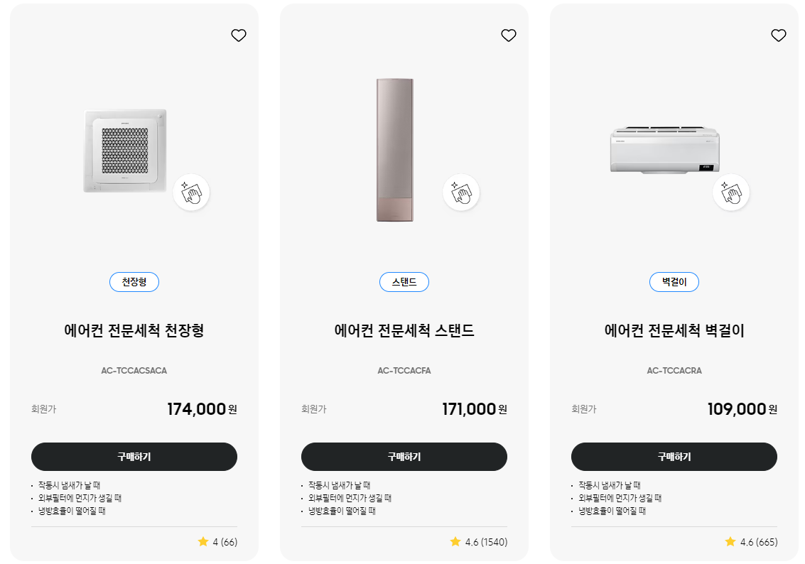 삼성전자 역시 삼성케어플러스를 통한 에어컨 청소 서비스를 제공하고 있습니다.