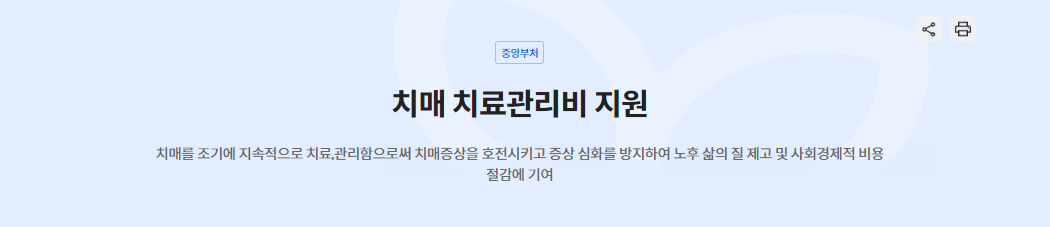 오늘은 치매를 조기에 지속적으로 치료 관리 하여 치매증상을 호전시키고 심화를 방지하여 노후 삶의 질을 높이고 사회경제적 비용 절감을 위한 정부의 치매 치료관리비 지원에 대해 알아 보겠습니다.