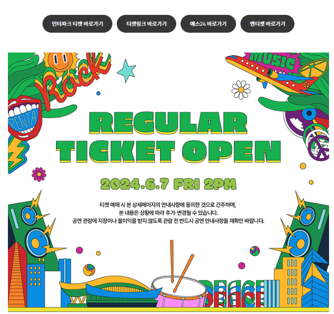 2024. 06. 07. (금) 14:00 부터 레귤러티켓팅을 할 수 있습니다.